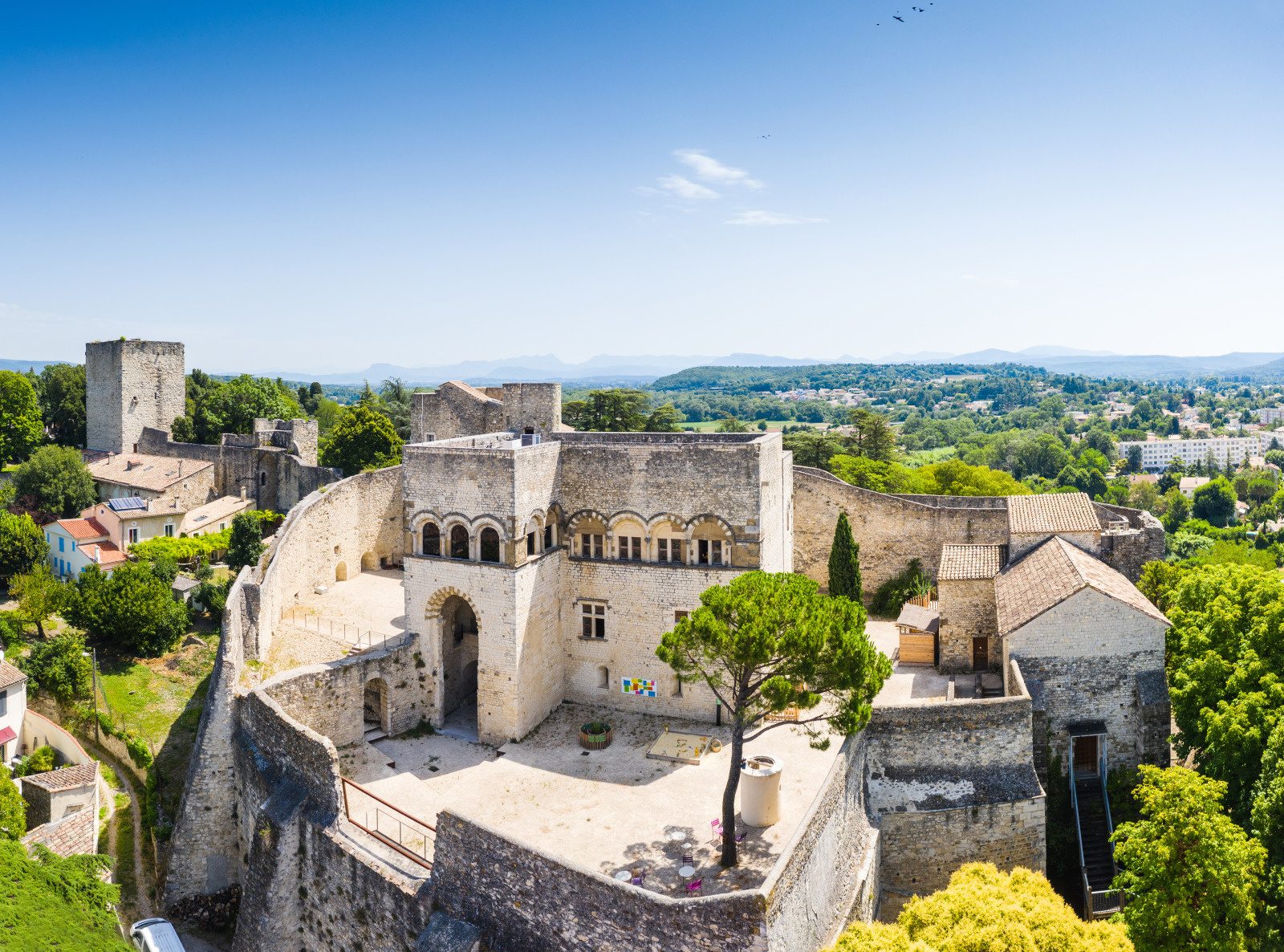 Perché sur les hauteurs de Montélimar et accessible en quelques minutes à pied depuis le centre-ville, le château témoigne de la puissance de la famille des Adhémar qui donna son nom à la ville. Il se compose d’un logis seigneurial, d’une chapelle romane, d’une tour carrée et d’une enceinte fortifiée surmontée d’un chemin de ronde. Au fil des siècles, les bâtiments ont connu de nombreuses fonctions : palais, forteresse, citadelle puis prison. Aujourd’hui propriété du Département de la Drôme et Monument classé, il a fait l’objet de restaurations successives avant d’ouvrir au public en 1983. Véritable joyau d’architecture romane méridionale, on y admire des fenêtres à arcades remarquables et un panorama imprenable à 360° depuis le chemin de ronde.